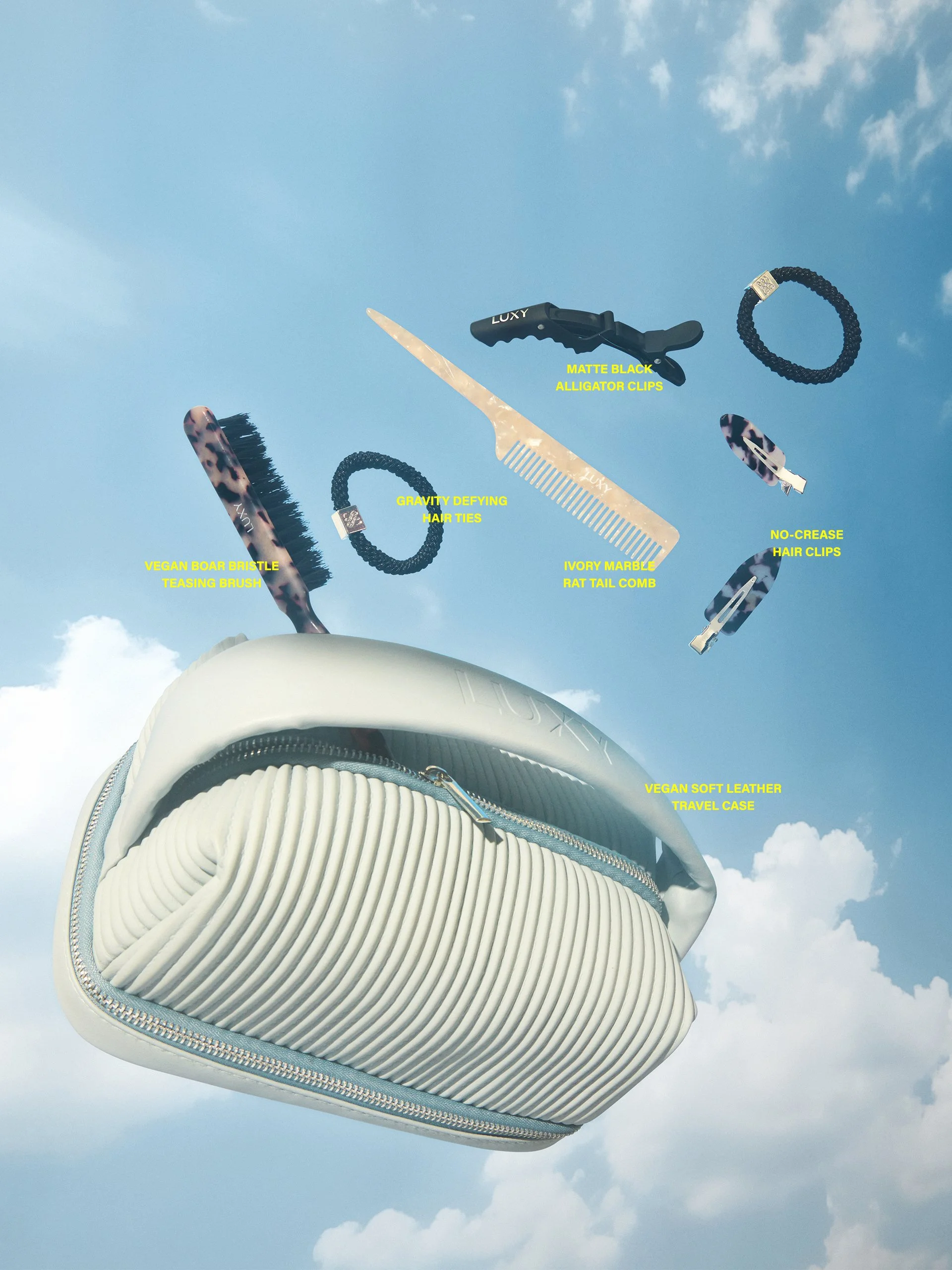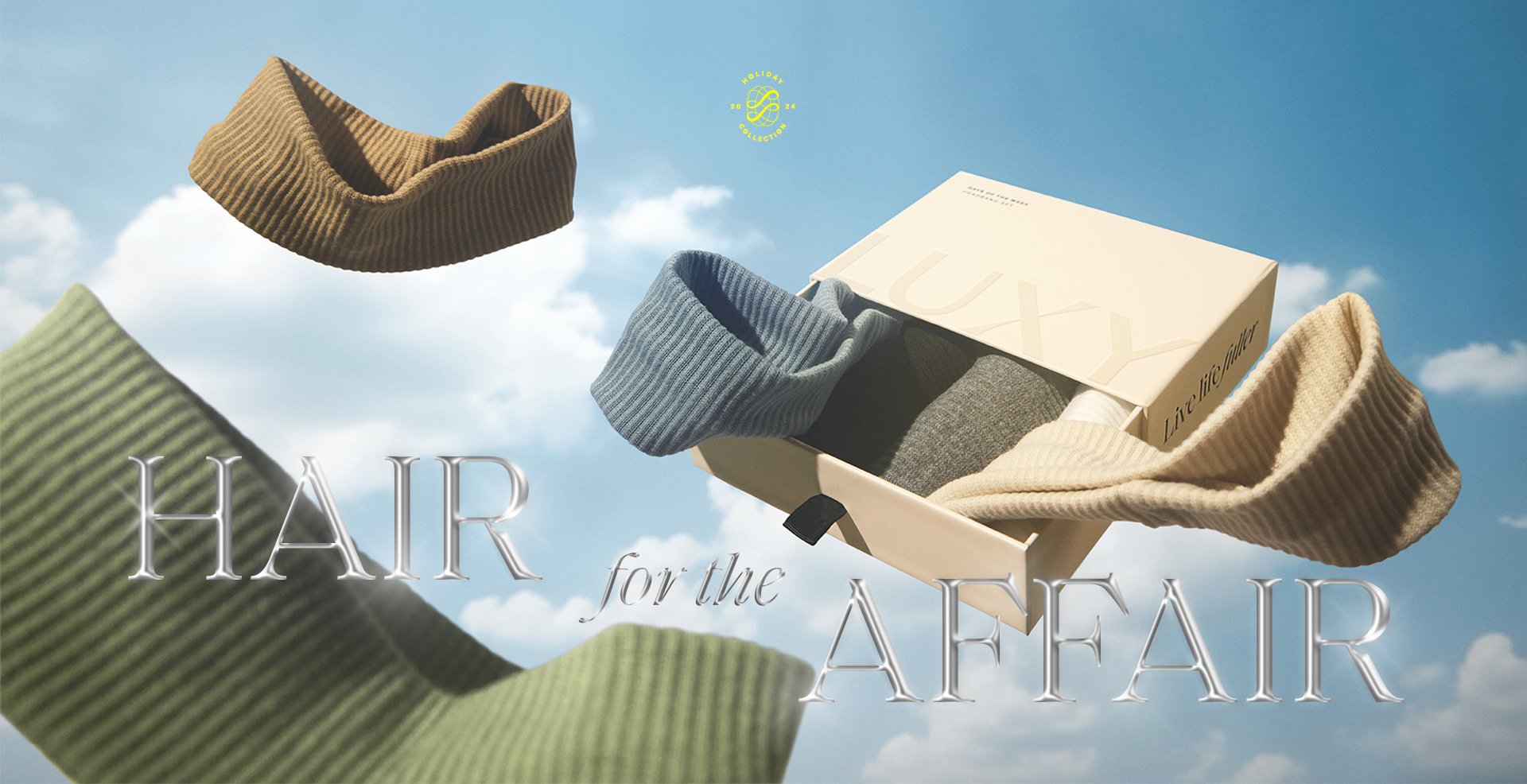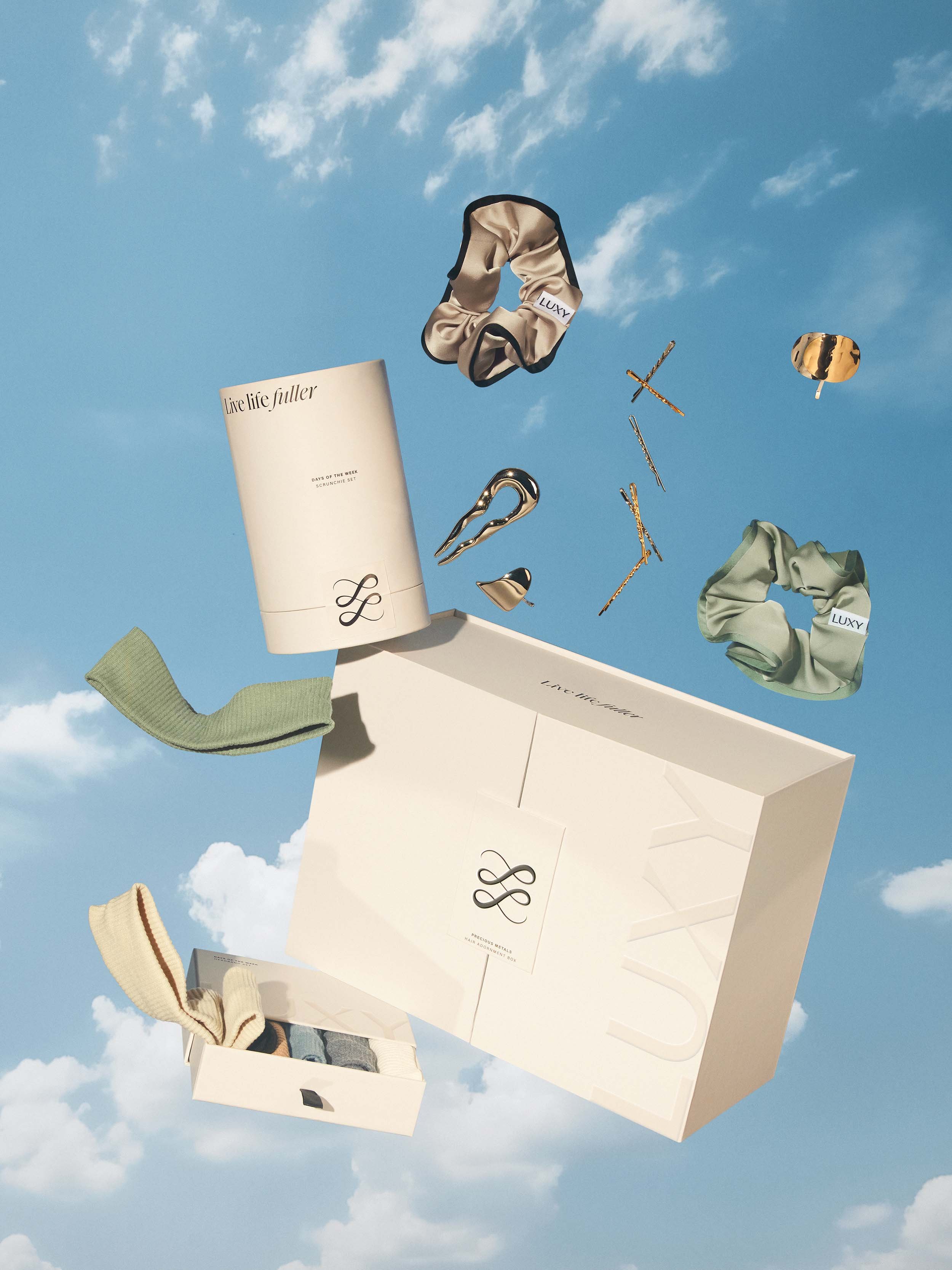 I led the creative direction for Luxy Hair’s holiday collection from concept through execution. An edit of premium hair accessories created as simple yet transformative styling pieces that are a companion to the brand’s iconic hair extensions. Guided by the concept of “Elevate every look, effortlessly”, we positioned the accessories as an easy upsell, with giftable packaging designed to delight. To extend beyond a seasonal launch, the visuals reimagined Luxy’s signature blue cloud backdrop, with products photographed as if floating, playfully evoking lightless and ease to transcend the holiday moment while remaining unmistakably on-brand. Deliverables include full campaign visuals, product/packaging design, and graphic assets across channels.